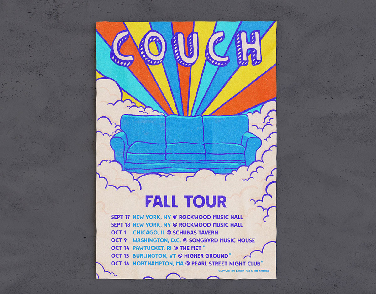 This cover was directly inspired by the 2021 Fall Tour poster I created for Couch! That was our first project together, making this vinyl super special for me. I loved reimagining a previous work in a new format.